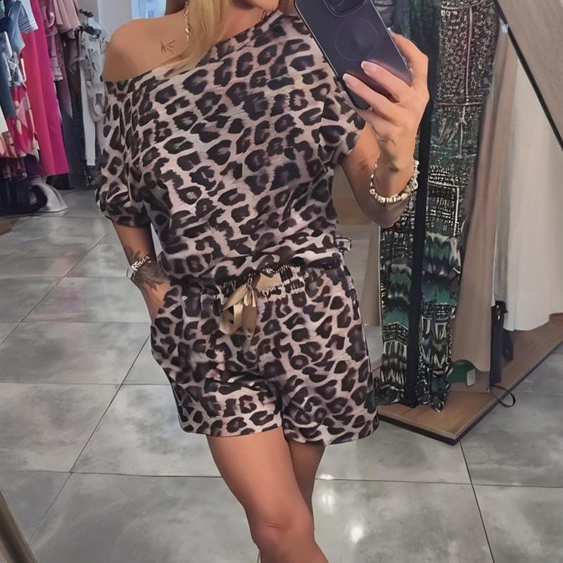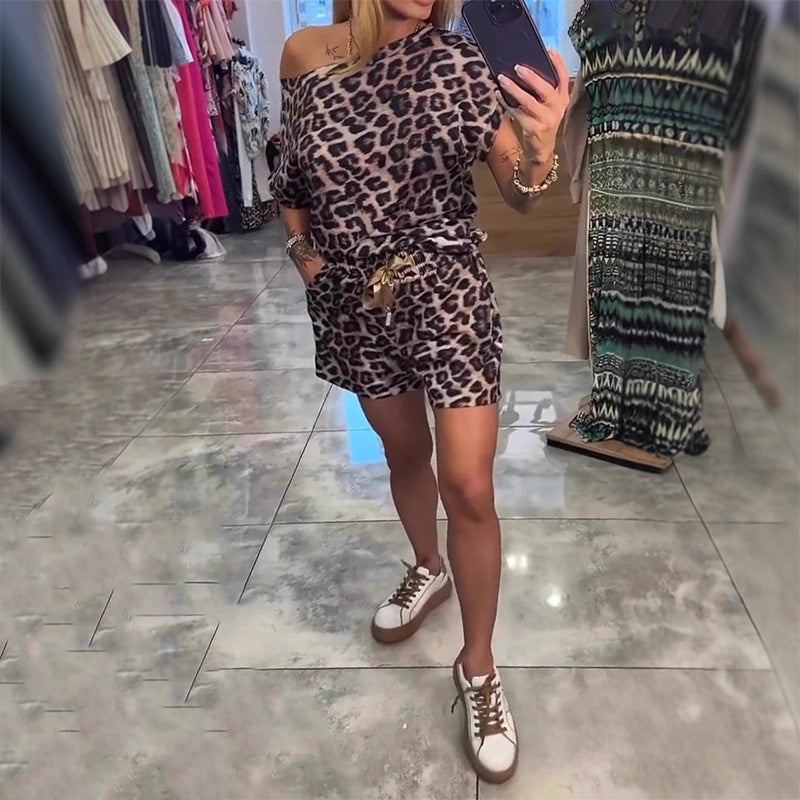 Le paquet comprend : 1 ensemble haut et short à imprimé léopard et épaules dénudées