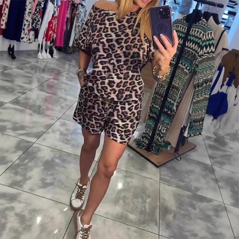 DESIGN TENDANCE À MOTIF LÉOPARD - Laissez s'exprimer votre côté sauvage avec l'ensemble haut et short à épaules dénudées à motif léopard. La coupe ample et décontractée assure un confort optimal tout en conservant un look chic, idéal pour toutes vos sorties décontractées.