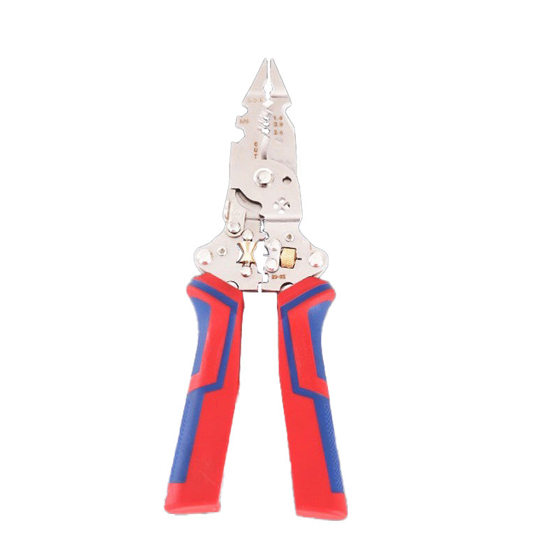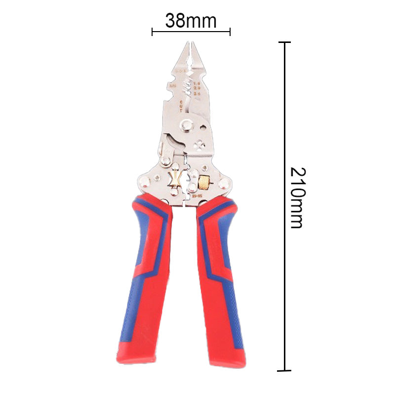 OUTIL D'ÉLECTRICIEN MULTIFONCTIONNEL : Outil tout-en-un pour couper, dénuder, sertir et tester la tension, idéal pour les électriciens professionnels et les passionnés de bricolage.