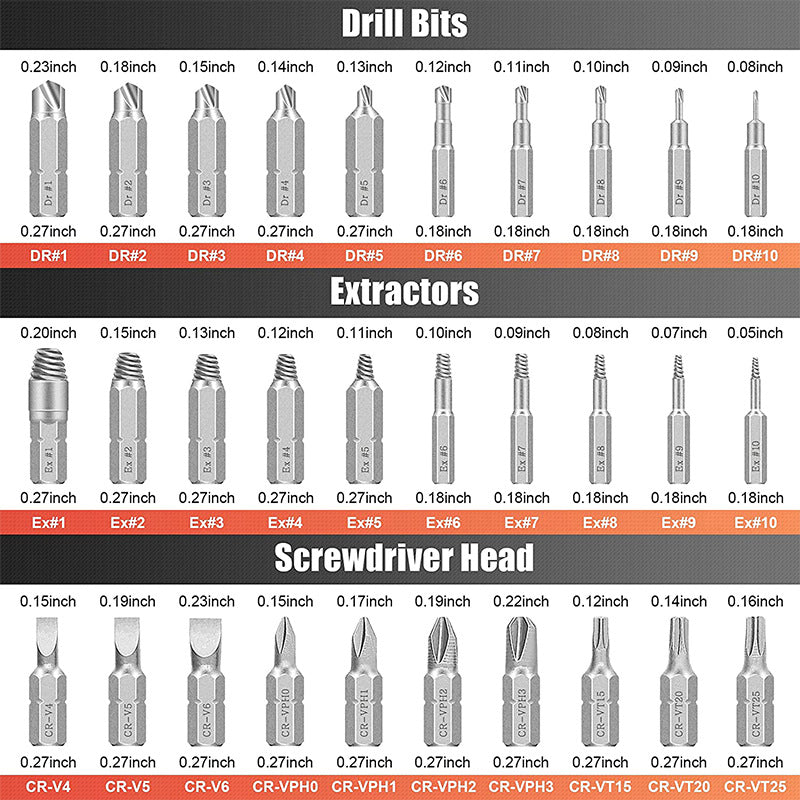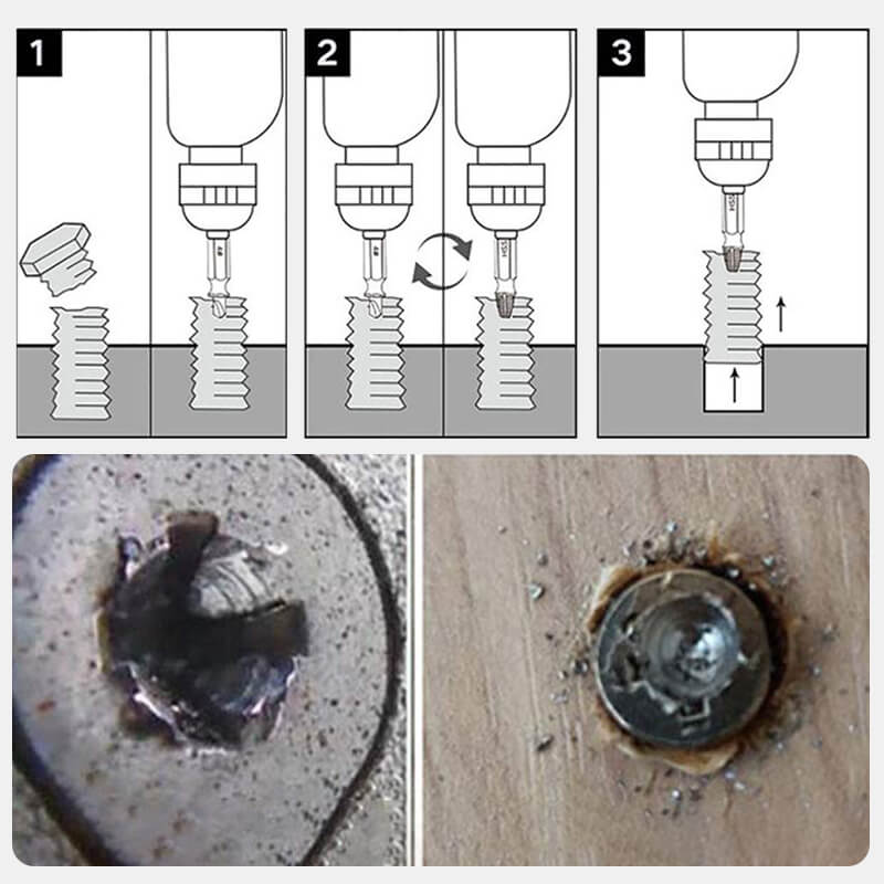 Élimine même les vis et boulons les plus tenaces ébréchés, endommagés, incrustés, rouillés et surpeints. Convient pour les vis à six pans creux, les vis à métaux, les tire-fonds, les vis à bois, les vis hexagonales, les vis à tôle et autres vis.